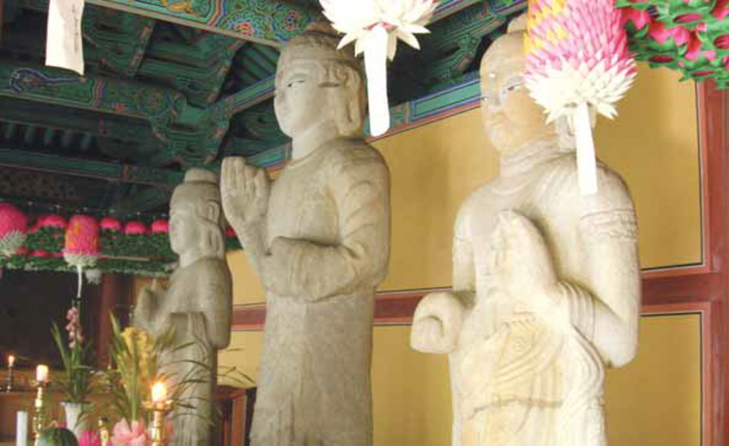 ´ë¿õÀü¿¡´Â ÅÂÁ¶¿Õ°ÇÀÌ ÈĹéÁ¦¸¦ ¸êÇÏ°í ¸¶Ä§³» 3±¹ÅëÀÏÀÇ À§¾÷À» ´Þ¼ºÇÑ ÈÄ Á¶¼ºÇß´Ù´Â »ïÁ¸¼®¹°ÀÌ ÀÖ´Ù. ÀÌ °³Å»çÀÇ »ïÁ¸¼®ºÒÀº Á¶¼±½Ã´ë ÀÌÀüÀÇ ºÒ»ó Áß °ÉÀÛ¿¡ ¼ÓÇÏ´Â ÀÛǰÀ̶ó ÇÒ ¼ö Àִµ¥, ۰¡ Å« ÁÖÁ¸ºÒ¿¡ ºñÇØ »ó´ëÀûÀ¸·Î ÀÛÀº ÁÂÇù½ÃºÒ, ¿ìÇù½ÃºÒÀÌ ÀÖ´Ù. Áß¾ÓÀÇ º»ÀüºÒÀº Á¿ì 230§¯, ¾ÕµÚ216§¯ ¹æ´ëÇü ´ëÁ À§¿¡ ÀÔ»óÀ¸·Î µÇ¾î ÀÖ´Ù.