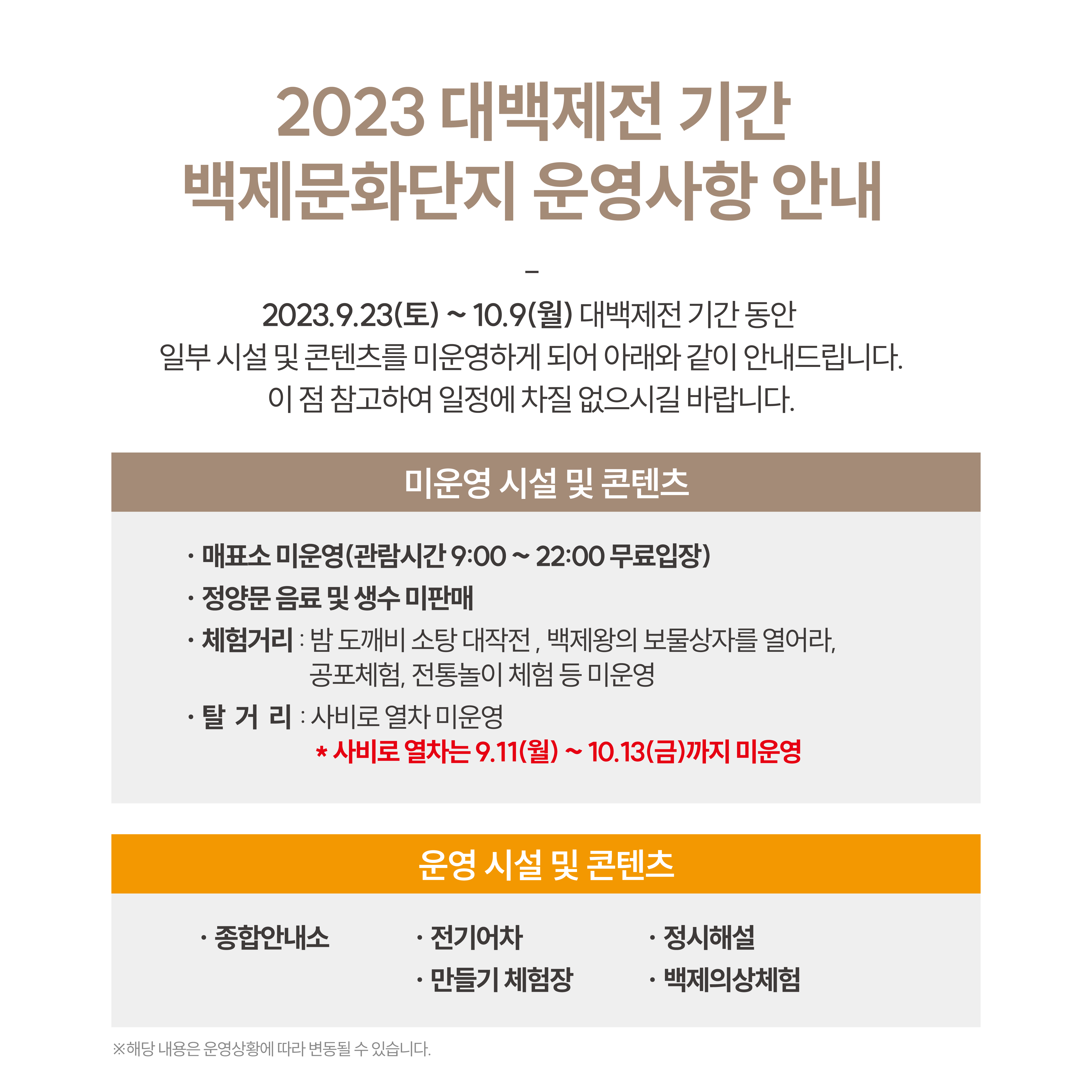 2023´ë¹éÁ¦Àü ±â°£ ¿î¿µ»çÇ× ¾È³»